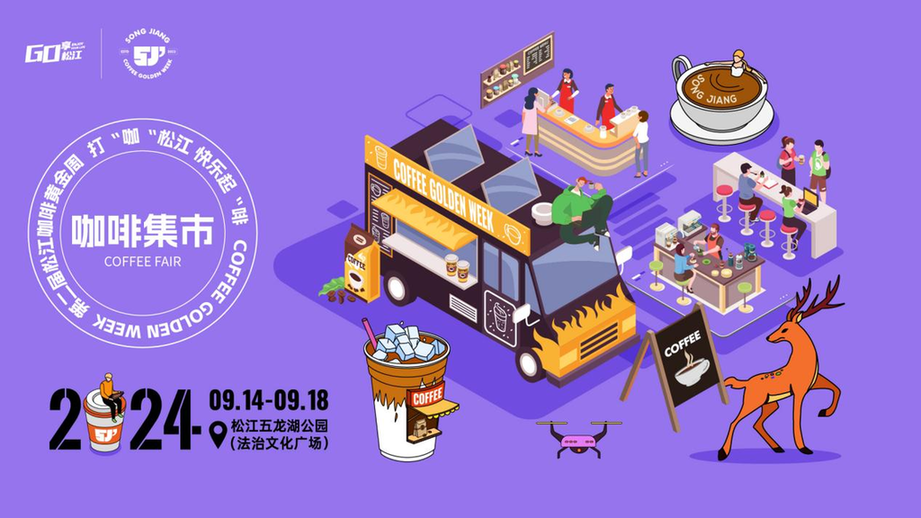 9月14日-9月18日第二届松江咖啡黄金周即将盛大启幕,诚邀您共赴咖啡之旅,在松江五龙湖公园(法治文化广场)共赴这场味蕾与心灵的双重盛宴!