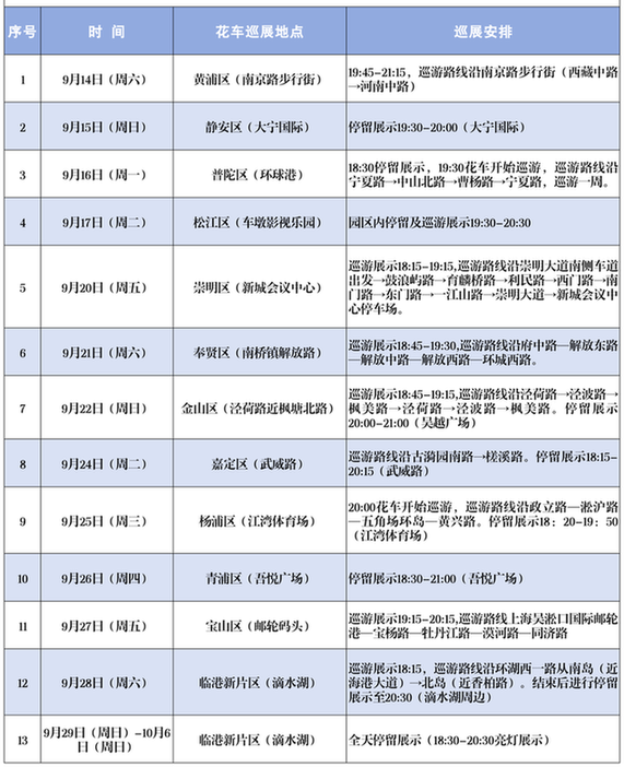 本届上海旅游节花车巡展日程