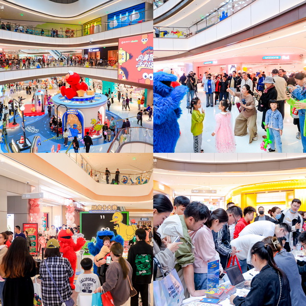 卡通联合潮流,时尚融合妙趣。中集美兰湖金地广场分别在A馆、B馆、兰巷、湖里打造了多个芝麻街主题打卡点位:7米巨型艾摩于A、B馆空中连廊热情Say hi;抵达美好乐园派对现场,可以打卡互动装置,亦或于甜品广场邂逅爱吃曲奇饼干的甜饼怪,在童梦世界加入古灵精怪的大鸟与奥斯卡的跳房子游戏,还有特设的爱宠停泊场随时迎接毛孩子们入场撒欢;更有以美式复古风格打造的芝麻街主题快闪店带来各种限定周边,为芝麻街爱好者解锁有意义的消费体验。整个中集美兰湖金地广场妙趣横生,“全明星”阵容突破次元壁再现经典场景,呈现为期70天的欢乐相聚芝麻街主题展。有爱有趣、身临其境的特色体验,在开业首日即引爆氛围,吸引了无数年轻消费者、亲子家庭以及有宠家庭前来互动拍照,深刻诠释了项目的亲子玩乐、宠物友好理念。