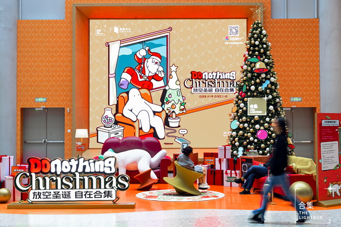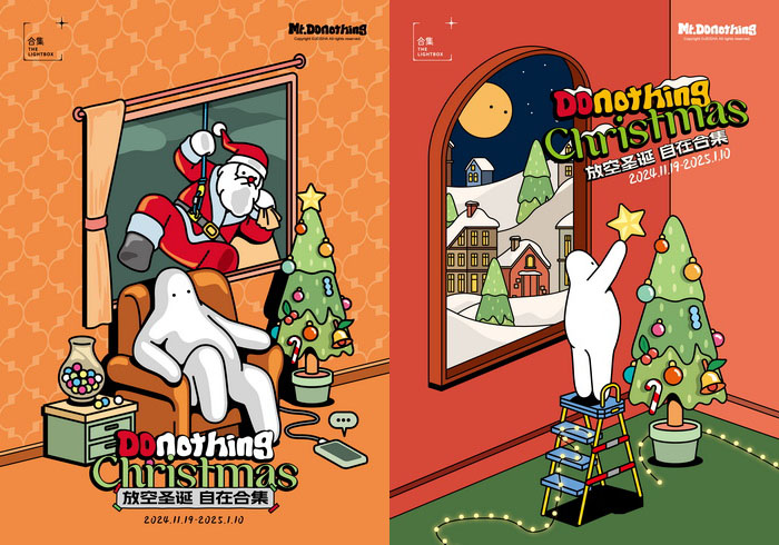 据主办方介绍,Mr.Donothing是韩国设计师曹熙载(CHO He-jae)创作的原创超懒卡通人物,也是每个身处高压焦虑、只想耗费时光认真发懒的人们的真实写照。今年圣诞季,Mr. Donothing来到“合集”,与大家一起分享他的“Donothing Christmas”,在这里不追求繁复的装饰,不强调礼物的堆砌,只想要传递一种不同的自在理念:在繁忙中找到宁静,在喧嚣中享受独处。给自己一个“什么都不做”的机会,从而在新的在这里,以更饱满的精神状态迎接挑战。