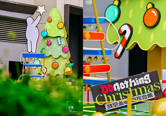 “合集”门口,Mr. Donothing正从容不迫地爬在梯子上为超大圣诞树挂上彩灯和树顶的圣诞星,给来访的朋友们点亮节日氛围,庆祝生活的每一个美妙瞬间。在这里,最好的装饰不是挂在树上的,而是那份内心的宁静和满足。让我们一起享受这个放空圣诞,体验自在合集的魅力。
