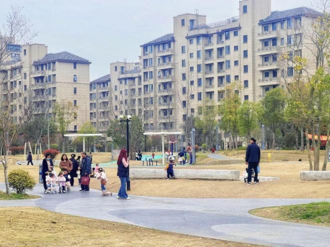 园区整体按照“一带、五区、多点”的结构设计,环形健康绿带串联起各个区域,遛娃散步超方便。专门设置的儿童游乐区,能让娃玩到不想走;大片阳光草坪适合铺个野餐垫,带点小零食,陪娃晒晒太阳、做做小游戏,随手一拍就是治愈系亲子写真。